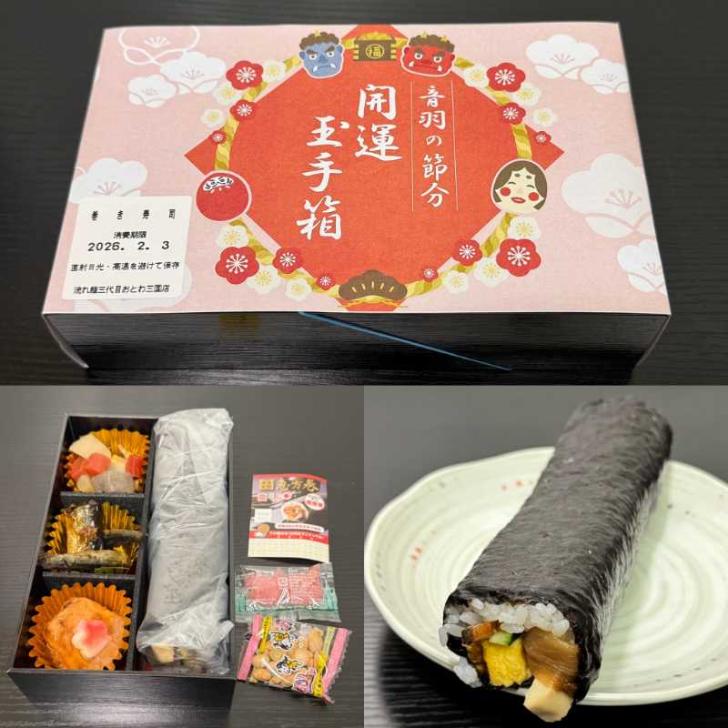 2026年の恵方は『南南東』!『恵方巻き』に副菜も付いた節分の要予約・数量限定メニュー『開運玉手箱』!【流れ鮨三代目おとわ 三国店】(大阪府大阪市)