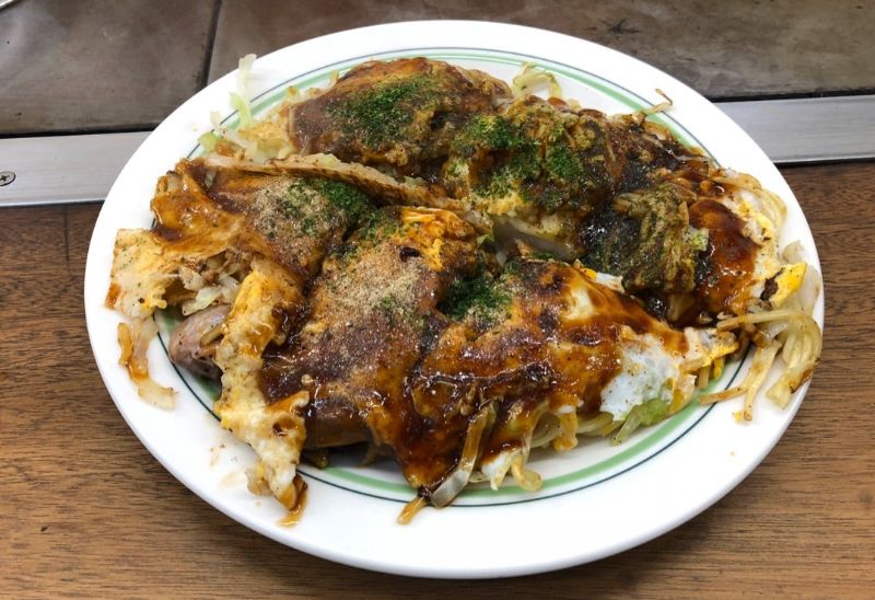 コリコリの砂ずりがたっぷり入ったお好み焼き!尾道のご当地グルメ『尾道焼』!【いわべえ】(広島県尾道市)