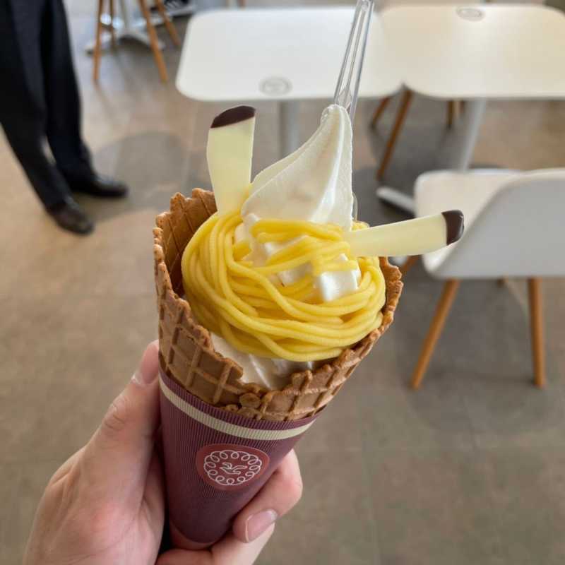 岩手名物『かもめの玉子』の黄味餡をトッピングした限定スイーツ『かもめソフト』!【かもめテラス 三陸菓匠さいとう 総本店】(岩手県大船渡市)