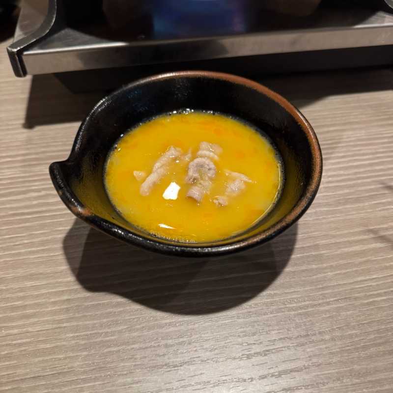 こちらのお店のしゃぶしゃぶは、出汁の利いたスープと卵を使って食べる独自のスタイルで、定番のポン酢やゴマだれ、薬味などは無し。