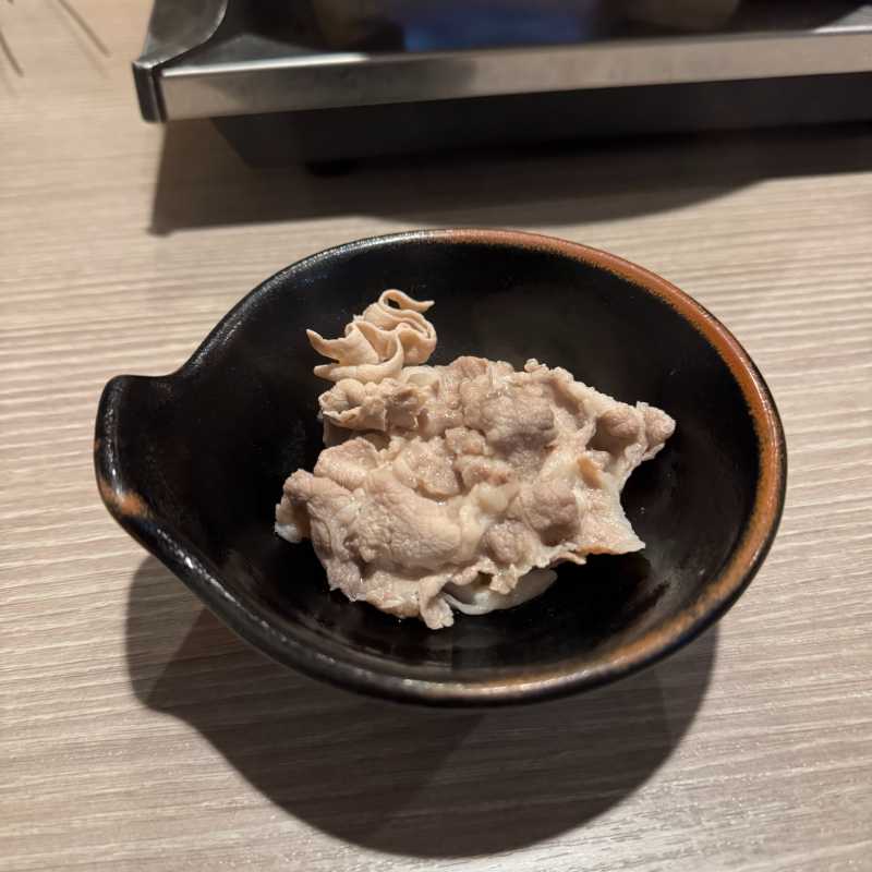 最初は卵を加えず、スープのみでバラ肉のしゃぶしゃぶをいただきます。
