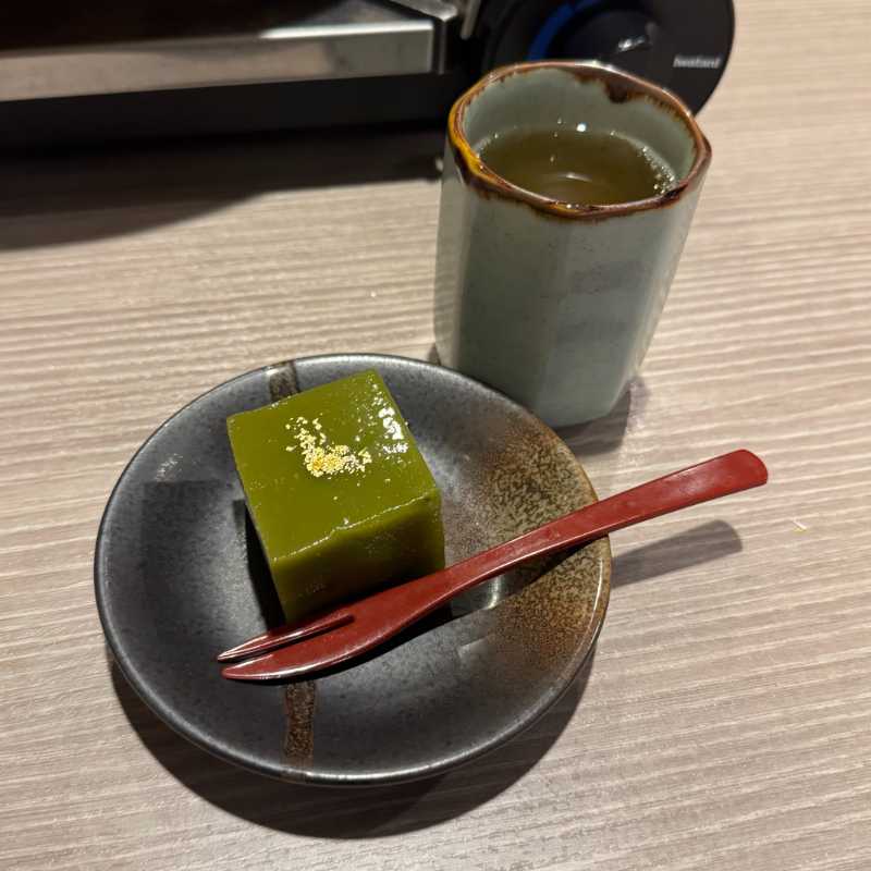 デザートは黒豚のコラーゲンに、鹿児島産の抹茶、さつまいも、黒糖を使った羊羹とのこと。
