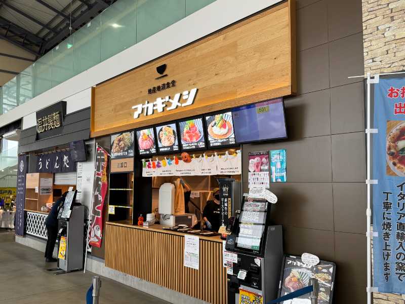 群馬県前橋市、「道の駅まえばし赤城」のフードコート内にある、地元食材の魅力を引き立てる定食や丼メニューを提供しているお店『地産地消食堂 アカギメシ』。