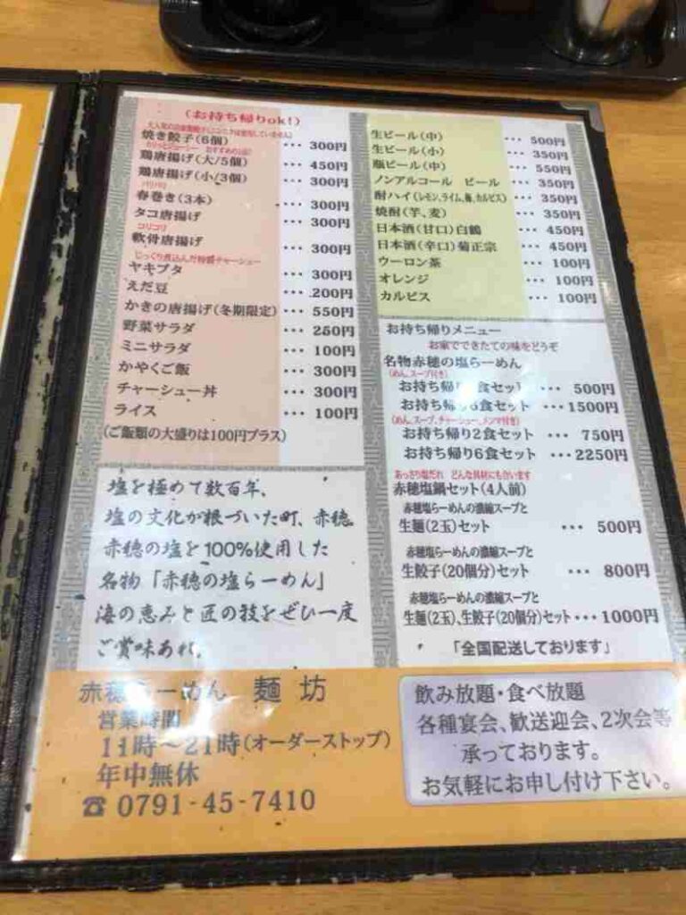 兵庫県赤穂市にある、地元名産の赤穂塩を100%使用した、塩ラーメンが看板商品のお店。