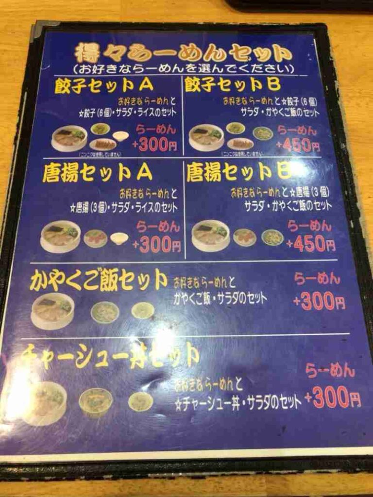 メニューは塩、醤油、味噌、台湾ラーメンなど様々な種類のラーメンがあり、サイドメニュー系も豊富。