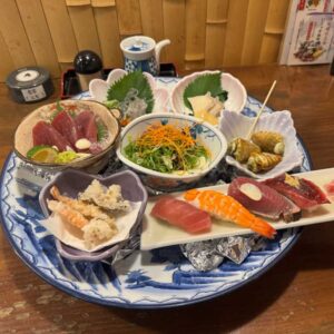 目当ての「焼さば寿司」はまだ残っており、他にもかつおたたきやクジラ、うつぼ、いなか寿司、ぶりぬた、ちくきゅうなど、様々な高知名物が並んでいました。