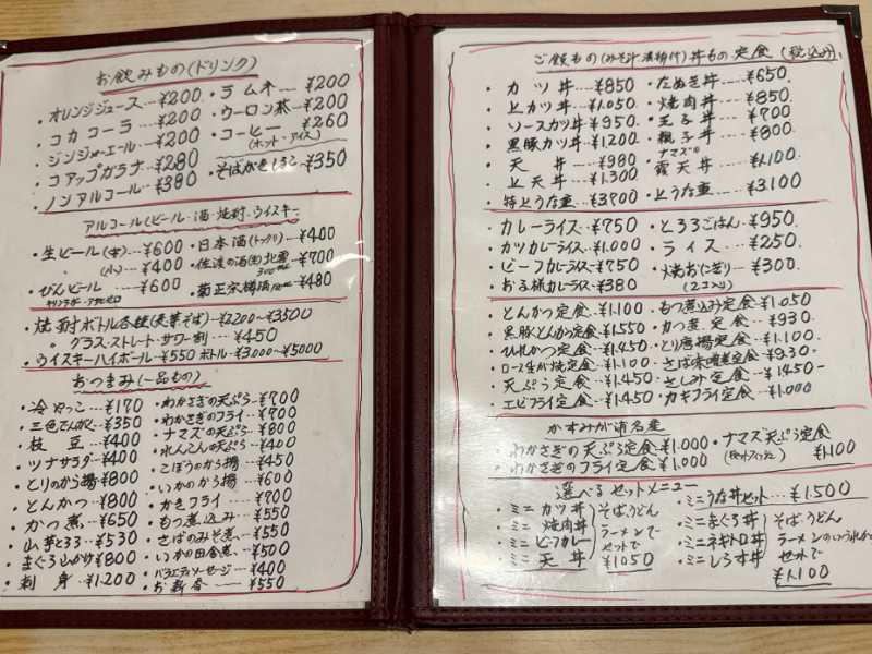 霞ヶ浦の新鮮な魚を使った料理や、黒豚カツ丼、常陸秋そばなど、蕎麦屋・定食屋として豊富なメニューを取り揃えているとのこと。