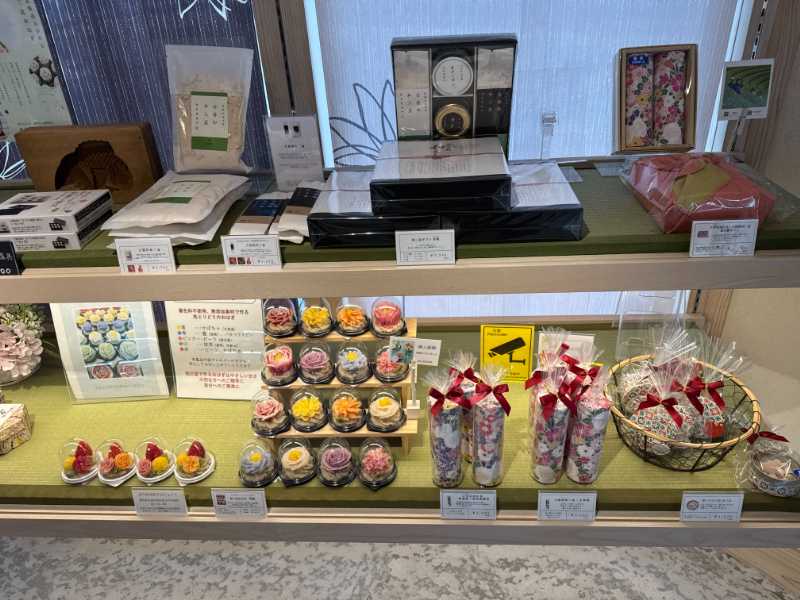 「世界初!和三盆を100%使用したスイーツ専門店」を掲げるお店で、定番の干菓子をはじめ、シュークリームやソフトクリーム、焼菓子、美しい花型のおはぎなど、様々な和三盆スイーツを販売しています。
