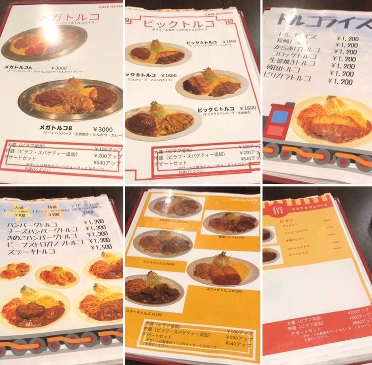 ご飯系はトルコライスを中心に、カレーやハンバーグ、パスタ、ピラフなど美味しそうな洋食系が中心。