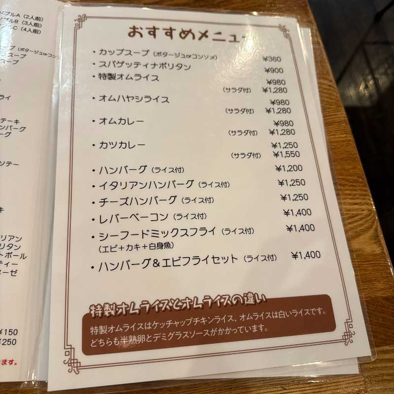 人気メニューはナポリタンや、ふわふわ卵とデミグラスソースが自慢の特製オムライスなど。