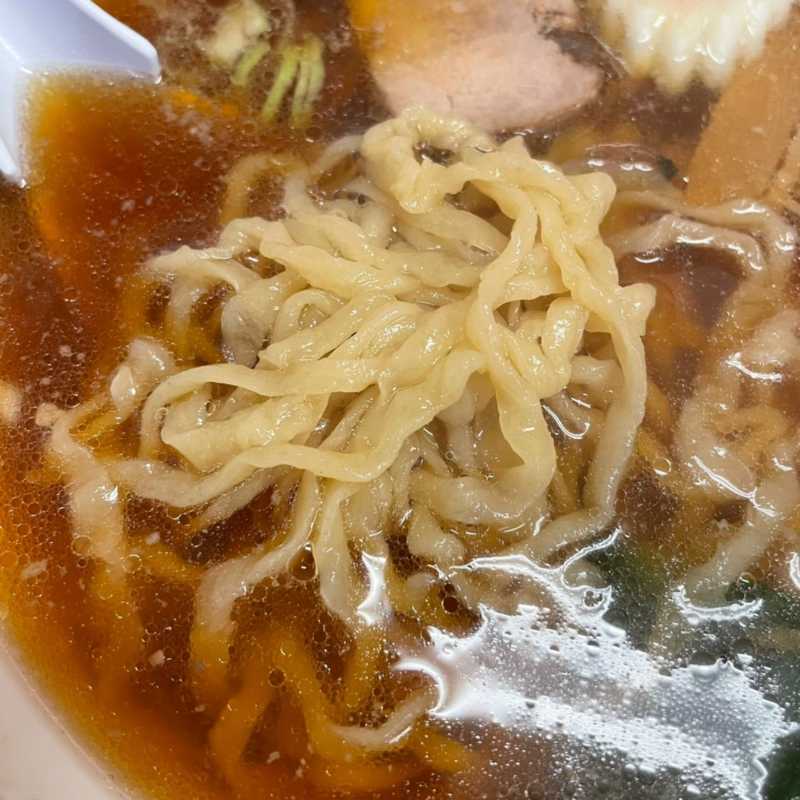 適度に油が浮き、動物系っぽいコクのある旨みと、優しい醤油の味わいが利いたあっさりスープ。