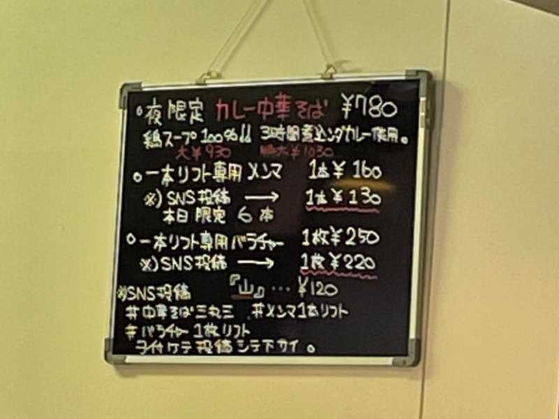 ラーメンは基本の中華そばと、夜限定でカレー中華そばもあるとのこと。