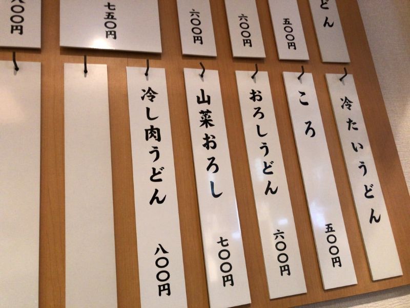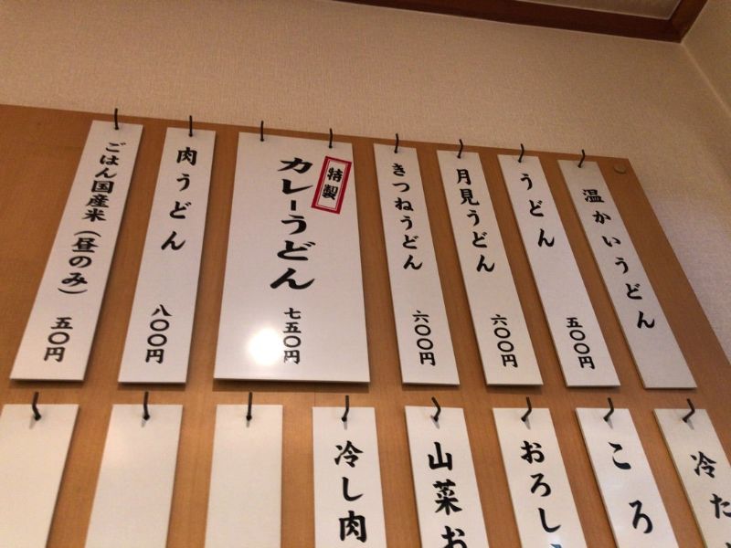 他には温かいきつねや肉うどん、冷たいおろしうどんなどがありました。