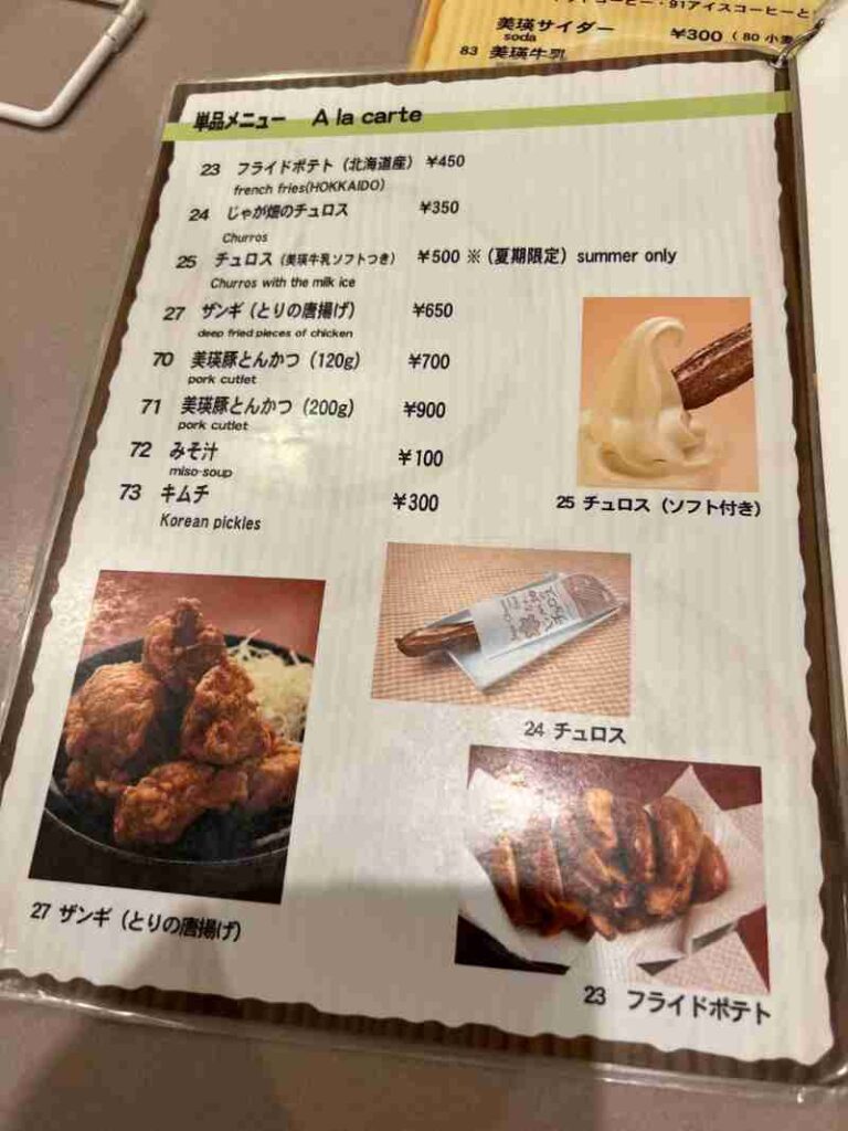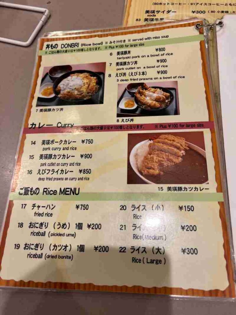 ファミリーレストランという名前通り、メニューは様々なジャンルがあり、美瑛カレーうどんを除いた人気メニューベスト3は上から「美瑛とんかつ定食」、「ザンギ・えびフライ定食」、「美瑛豚トンテキ定食」だそうです。