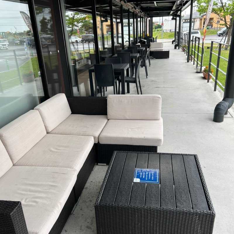 受け取った後、テイクアウトコーナーをすぐ外に出たらテラス席があったので、そちらでいただきました。