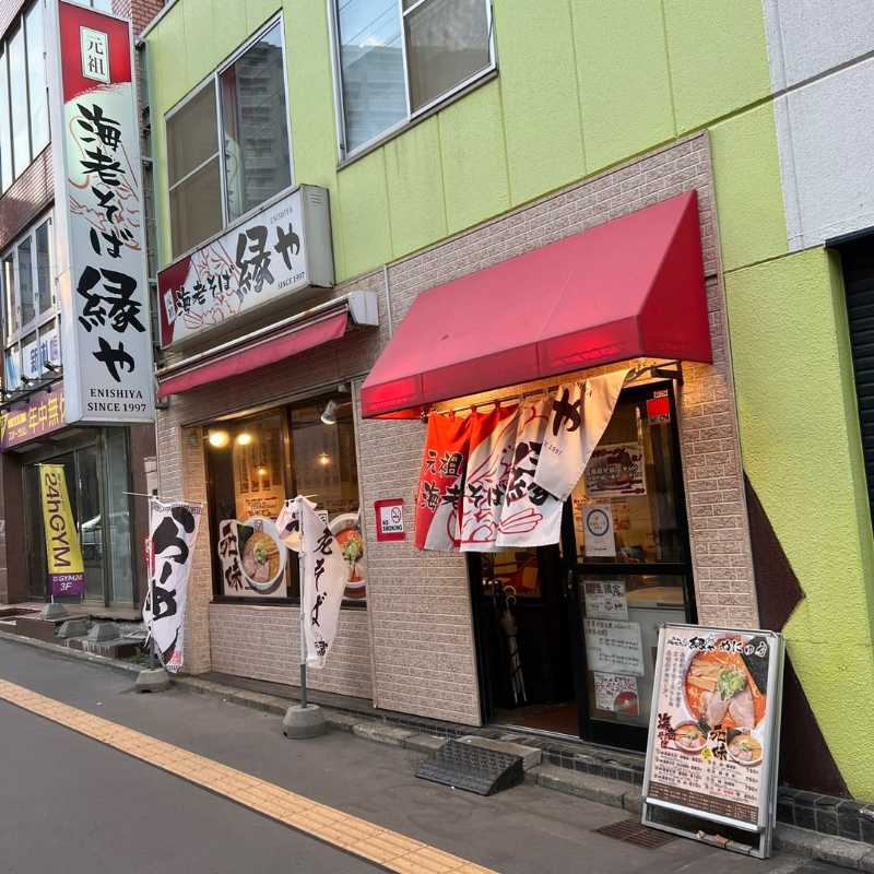 北海道札幌市にある、甘エビの頭を焼いてスープを取る、海老をふんだんに使ったラーメン「海老そば」発祥のお店『元祖海老そば 縁や』。