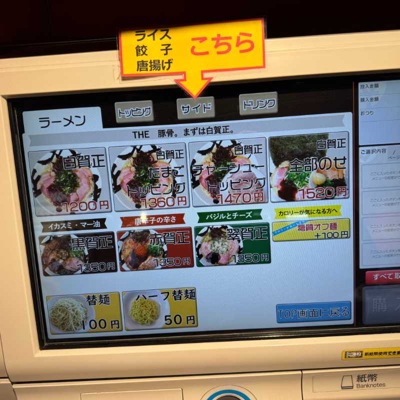 注文は券売機での食券購入。