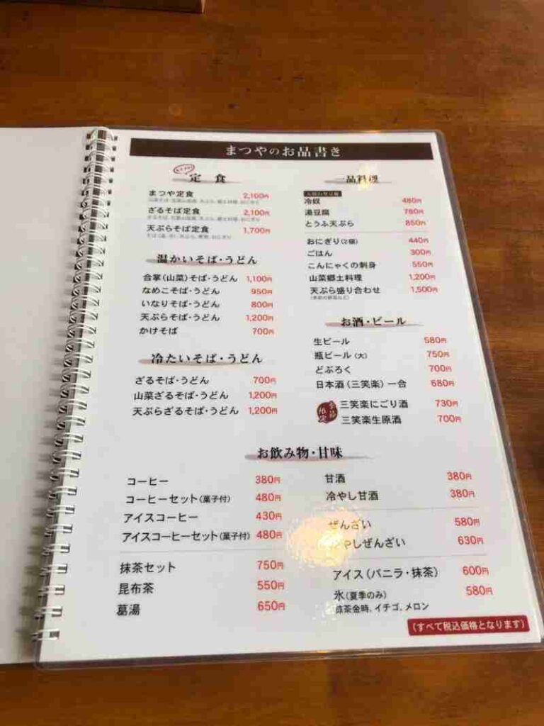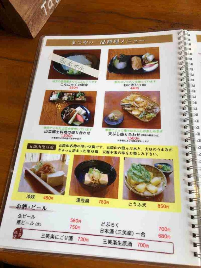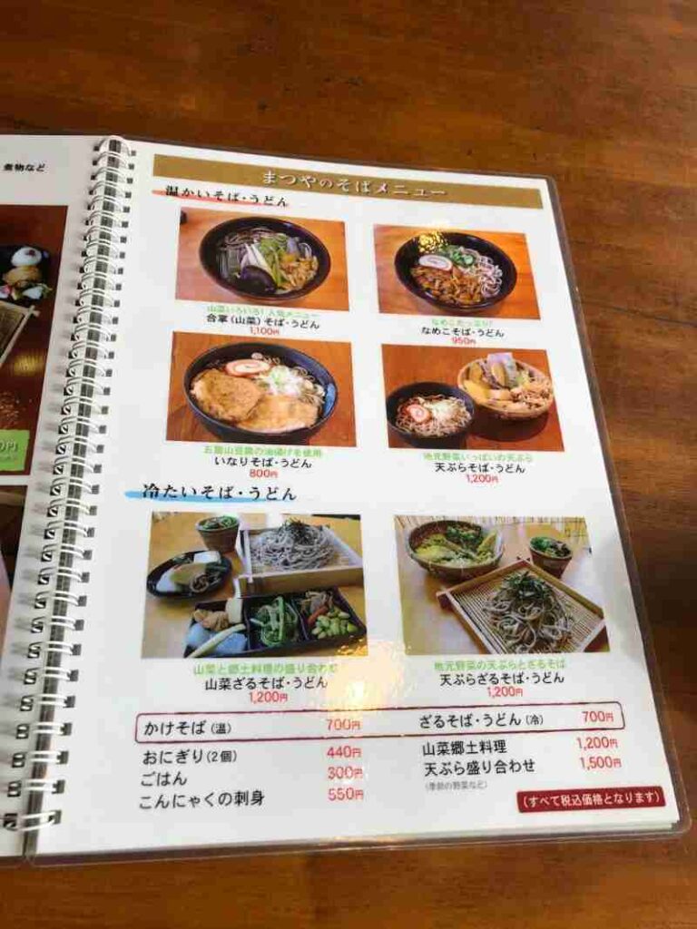 お店のイチオシメニューは山菜そば、名物の五箇山豆腐、郷土料理、煮物など五箇山の食を堪能できる「まつや定食」だそうです。