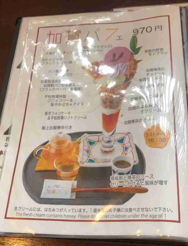 今回こちらのお店で食べたかったのが「加賀パフェ」。