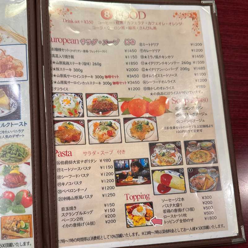 「ナポリタン」自体は横浜発祥説が有名ですが、こちらのお店では埼玉には美味しい野菜や肉がたくさんあることから、大宮を盛り上げようと地元産食材を使った「ナポリタン」を考案したそうです。