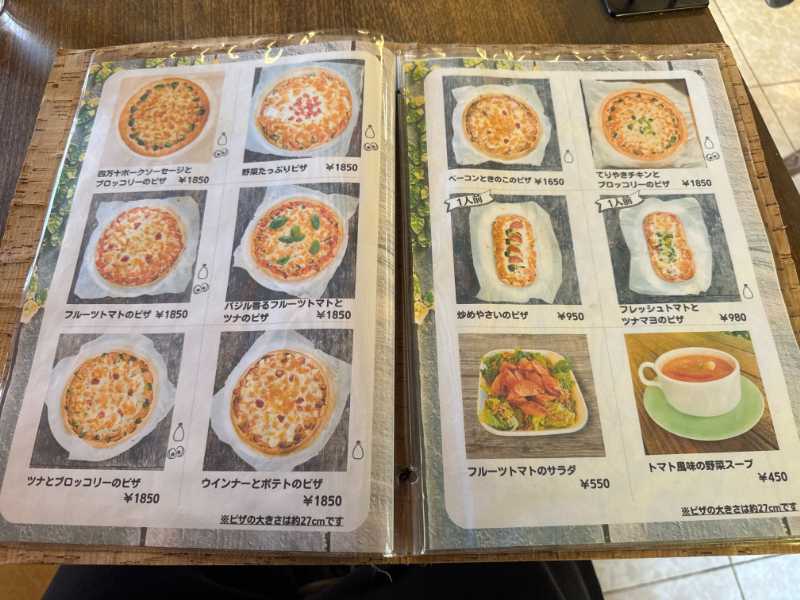 今回は『炒め野菜のピザ』と『フルーツトマトスムージー』を注文。