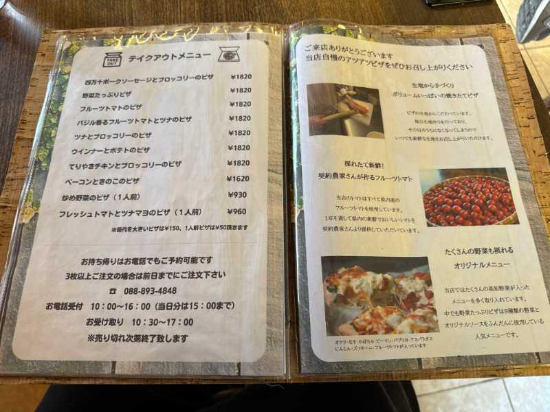 店主の方は「野菜ソムリエ」(一般社団法人日本野菜ソムリエ協会が認定する民間資格)を取得しており、高知県産野菜をふんだんに使った手作りピザが人気のお店。
