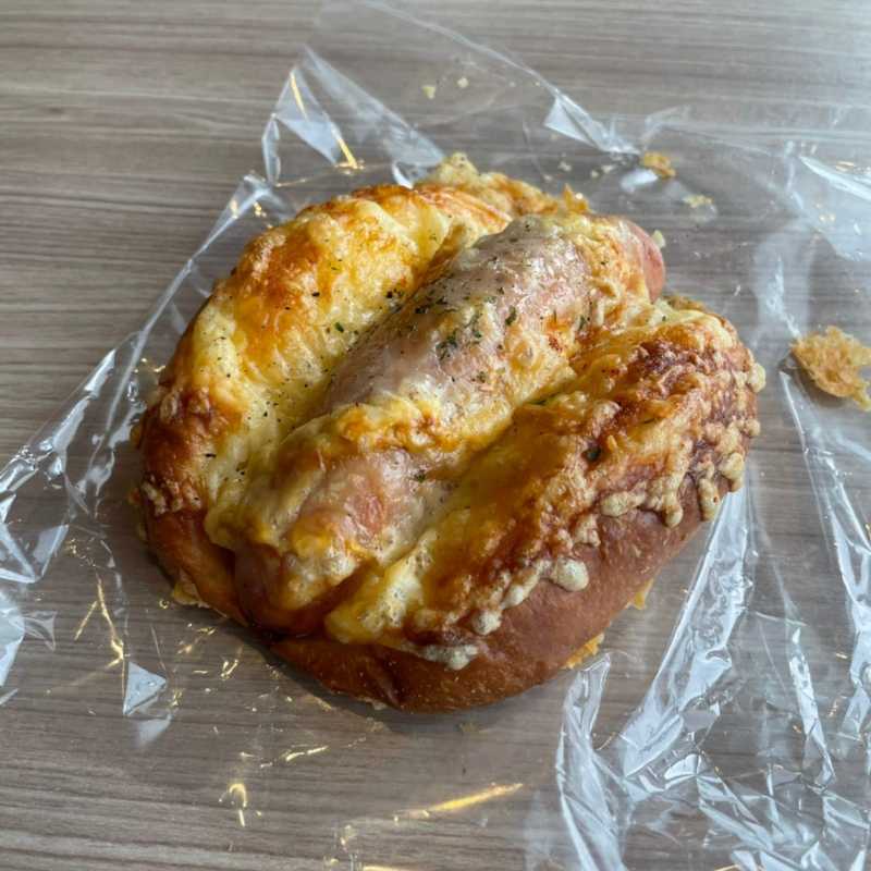 ソーセージが豪快に乗ったパンはパリッとチーズが香ばしく、ソーセージはジュワっと濃厚な旨みの肉汁が溢れジューシー、生地はふんわりもっちり食感でした。