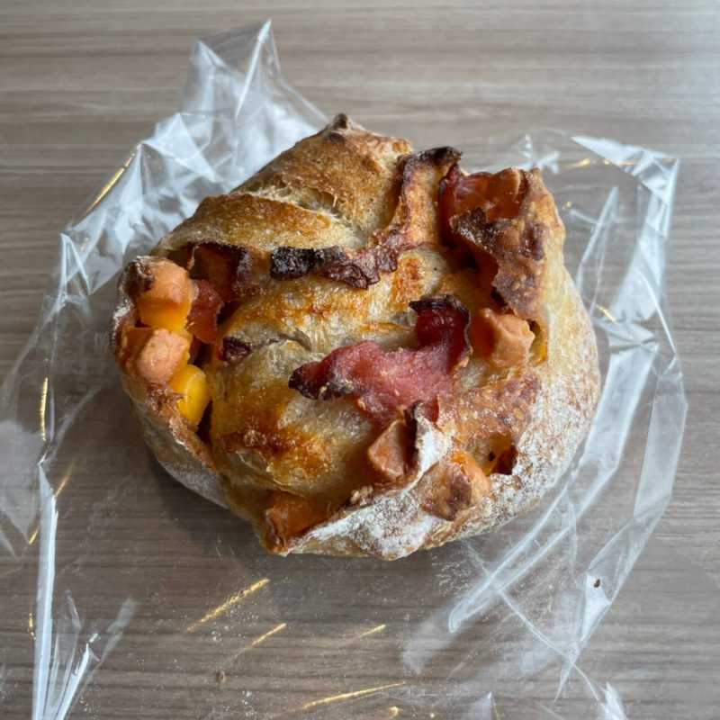 チーズとベーコンが入ったハード系のパンは、少し湿気た食感。