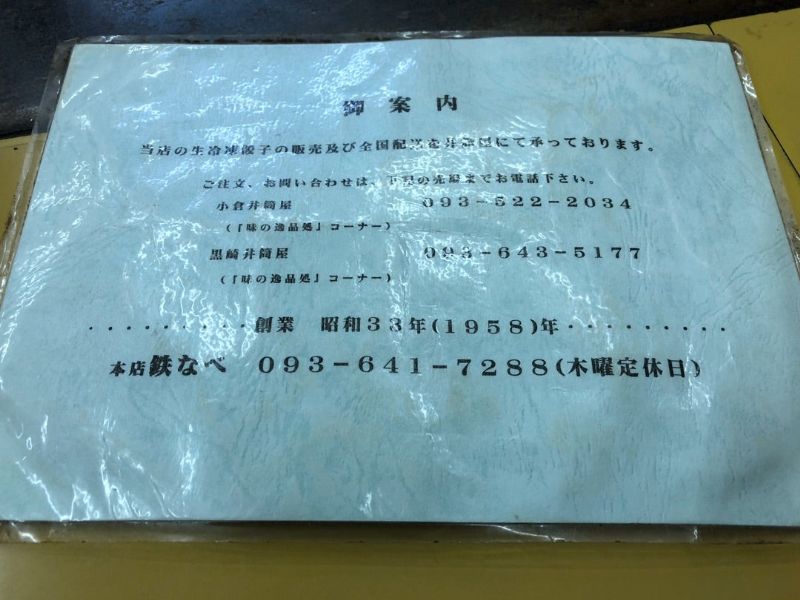 元々餃子を鉄鍋に乗せるスタイルを考案したのは、北九州市八幡西区折尾で1958年に開業した、「やまとぎょうざ 本店 鉄なべ」というお店(現在は黒崎に移転)。