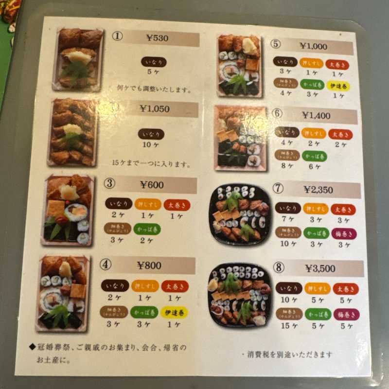 ネットの情報では、店主の方は佐野駅近くにある、明治10年(1877年)創業のいなり寿司の老舗「ふみきりすし」出身で、1998~2000年頃?に独立されたという情報が出てきました。