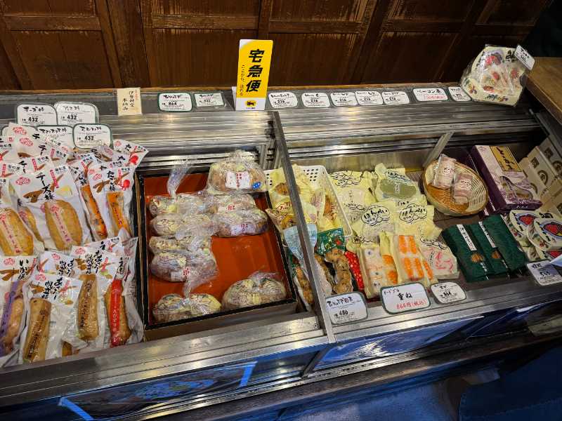 「おかげ横丁」には食べ歩きが楽しめるお店がたくさんありますが、こちらのお店でも気軽に食べ歩きスタイルで楽しめる「揚げかまぼこ」を中心に販売しています。