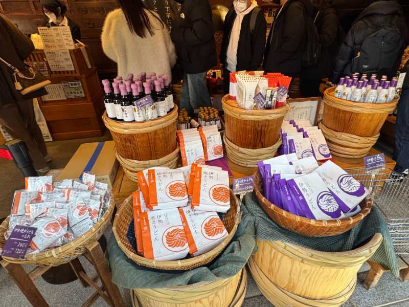 店内には醤油類や伊勢焼きうどん、伊勢うどんなど様々な商品が販売されています。