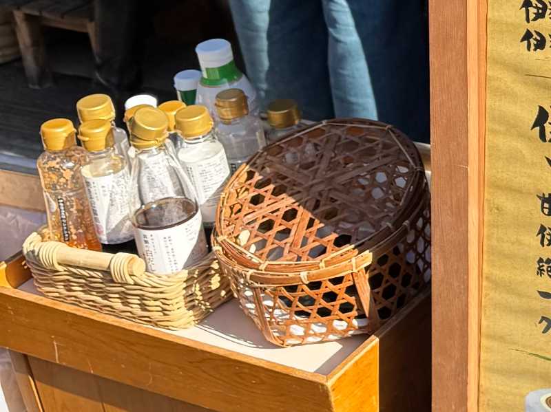 『伊勢醤油本舗』は、三重県産大豆と三重県産小麦を使って仕込む地醤油「伊勢醤油」などを販売している直販店で、おかげ横丁内初となる醤油屋(醤油蔵)とのこと。
