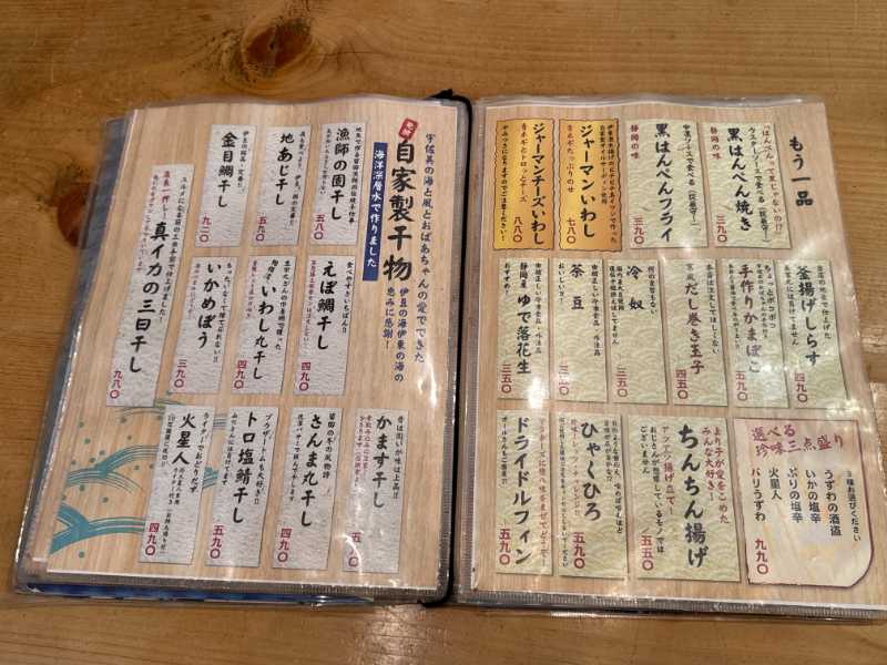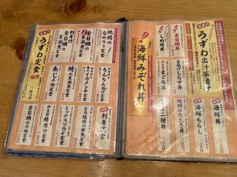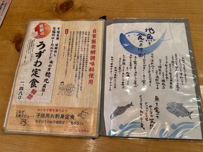 今回は同行者と2人での訪問なので、目当ての『うずわ定食』をはじめ、この地域ならではの珍しい魚をいくつか注文。