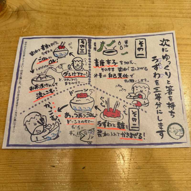 次はご飯にのせていただきましたが、少しの量のうずわでご飯が進みすぎて、危うくお茶漬け用のご飯が無くなるところでした。