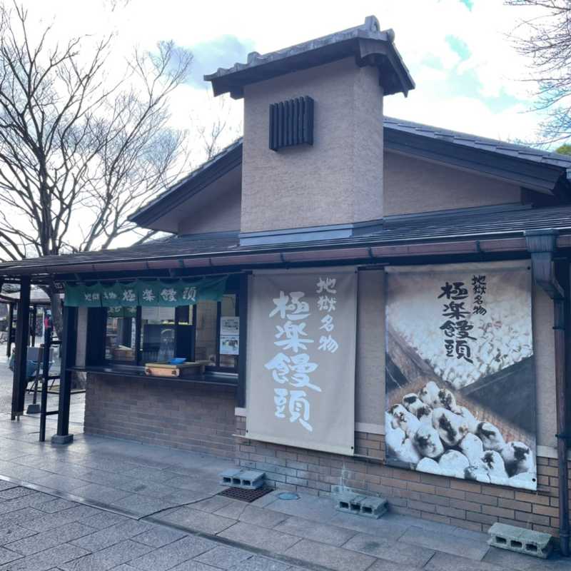 地獄の蒸気で蒸しあげて作られる、小粒サイズのお饅頭『極楽饅頭』が看板商品のお店。