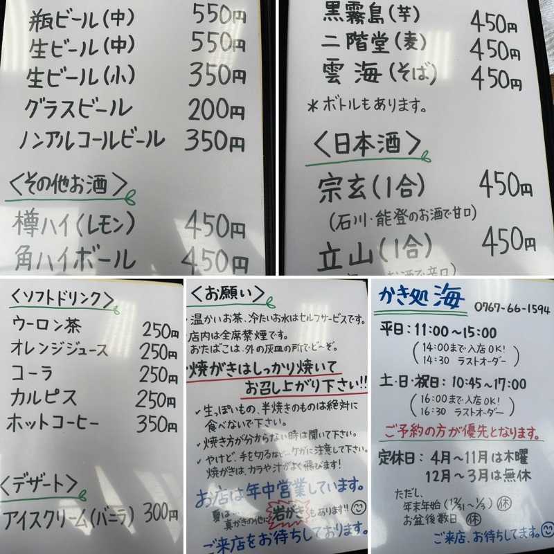 メニューはお手頃で楽しめる単品や定食、そして色々なかき料理が堪能できるコースもありました。