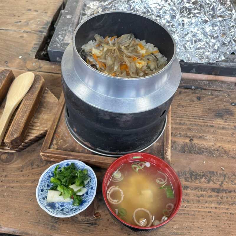 かきの身は小ぶりで数もそんなに多くないですが、お米はふっくらと炊きあがり、出汁の旨味が効いた優しい味付けで、素朴ながら美味しい釜めしでした。