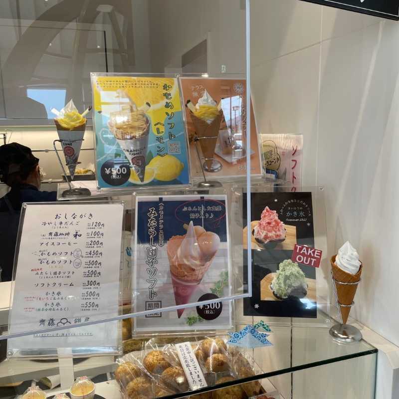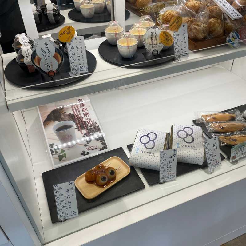 「かもめの玉子」をはじめ、和・洋菓子、焼き立てパン工房、さいとう製菓のルーツである「斎藤餅屋コーナー」など、様々な商品を販売している店舗になっているとのこと。