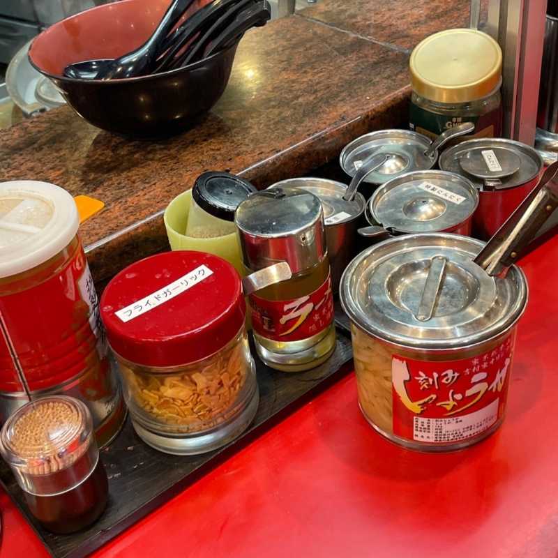卓上には沢山の種類の薬味が置いてあり、おすすめの食べ方も書いてあります。