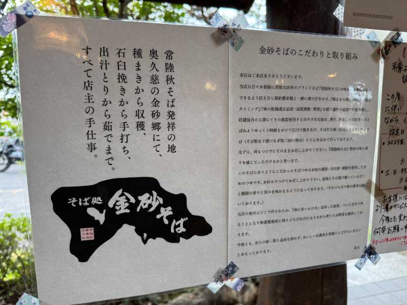 「金砂郷」はかつてこの地区で砂金が取れたということが名前の由来で、上述の通り国産そば粉の中でも指折りの「常陸秋そば」発祥の地。