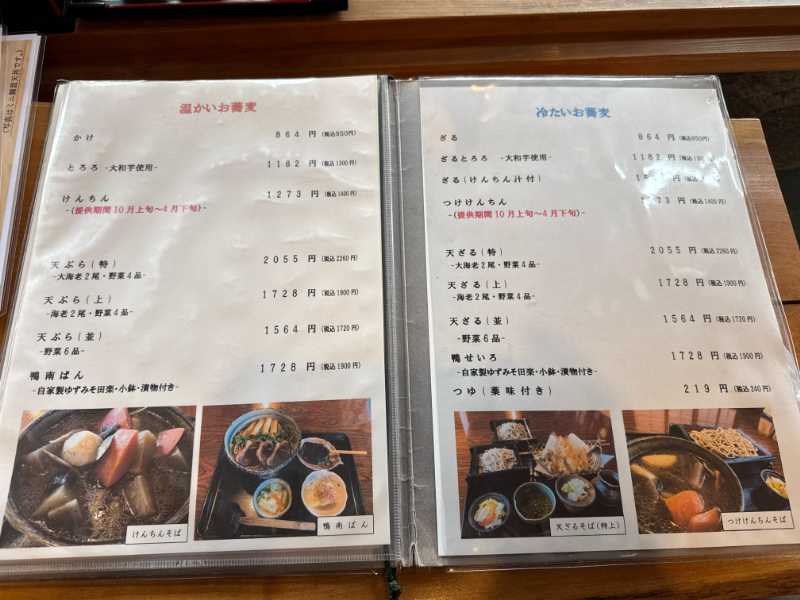 今回目当ての「けんちんそば」や「つけけんちん」は、10月上旬~4月下旬の季節限定メニューのようですが、夏にも季節限定の「夏けんちんそば」というメニューがあるようです。