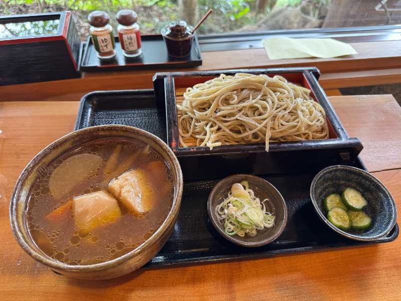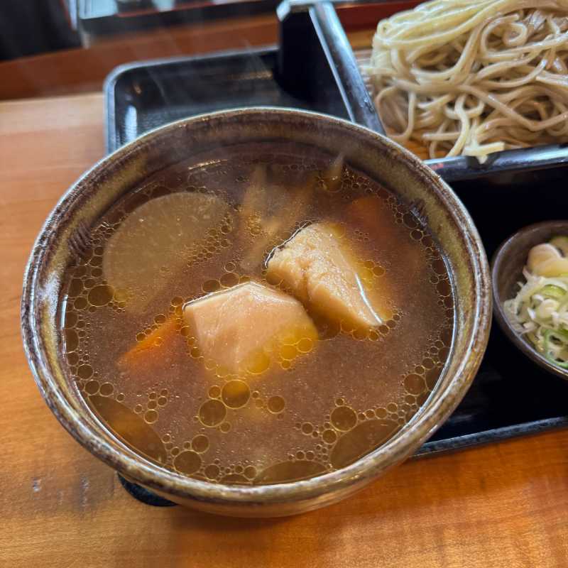 けんちん汁はそのままでも飲めるくらい塩気控えめ、つけ汁としては少し優しめの味わい。