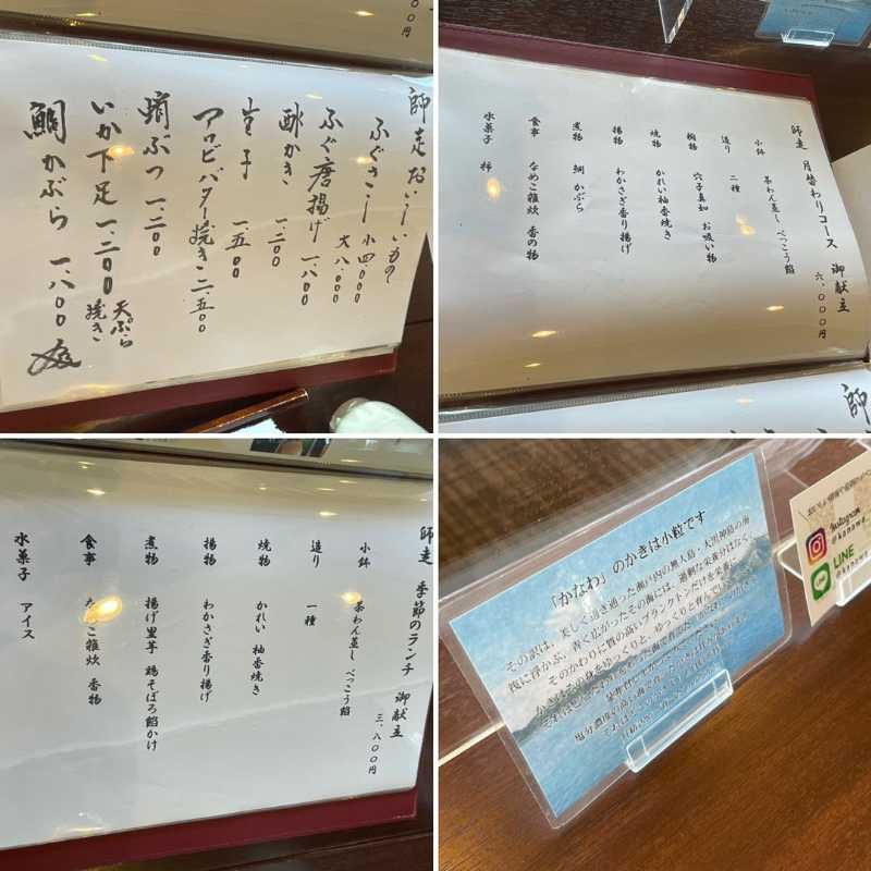 メニュー写真が見にくくて申し訳ありませんが、牡蠣料理を中心に竹原牛やアナゴなど、広島の食材にこだわった様々な料理が掲載されています。