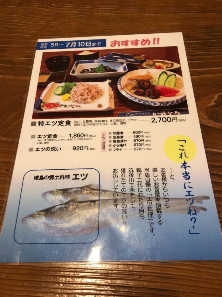 今回こちらのお店に訪れたのは、まだ食べたことがない『エツ料理』が目当て。