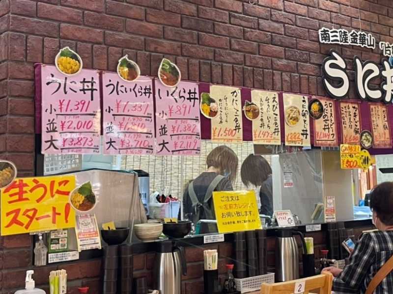 メニューはうに丼をメインに、いくらやかに、えびなどもあります。