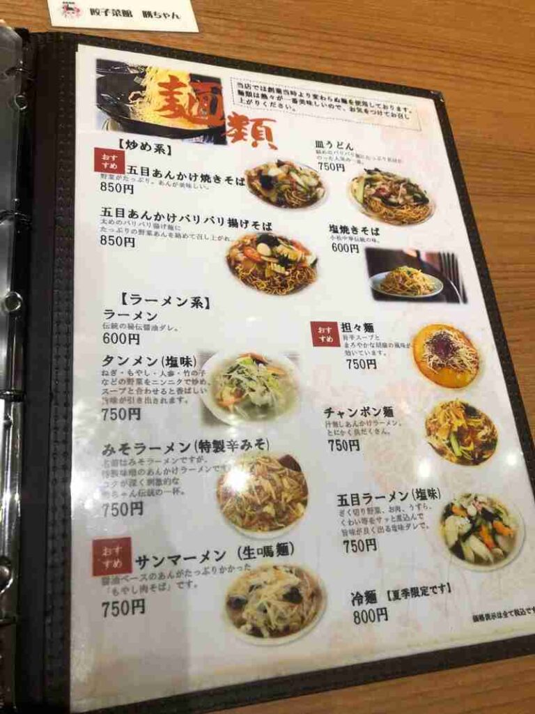 人気の5品は焼き餃子、塩焼きそば、若鶏丼、みそラーメン、回鍋肉丼だそうです。