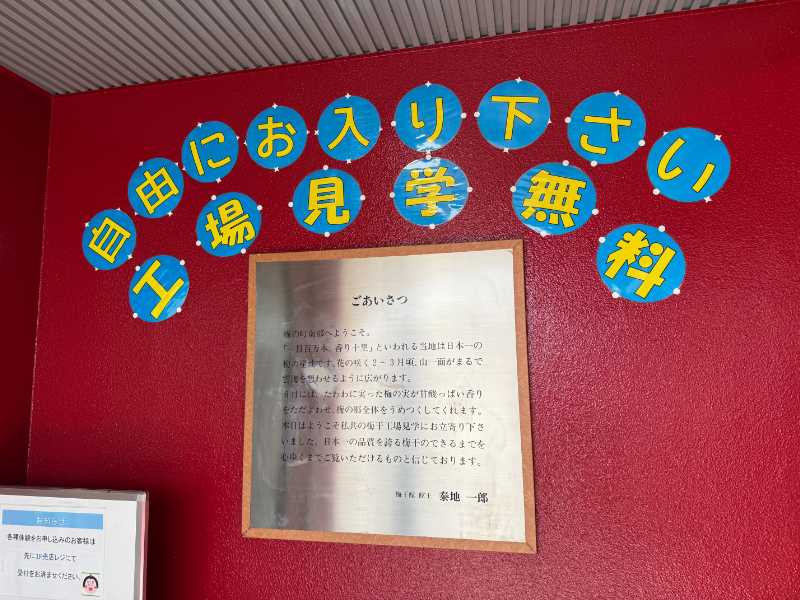 梅酒・梅干し・梅ジュース作り体験(前日までの予約制)、無料の工場見学、お得なアウトレット品や試食コーナーが充実した売店など、魅力満載の施設になっています。