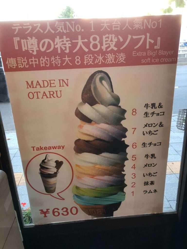 ボリューム満点の名物スイーツ『8段ソフト』!【北一硝子三号館テラス】(北海道小樽市)