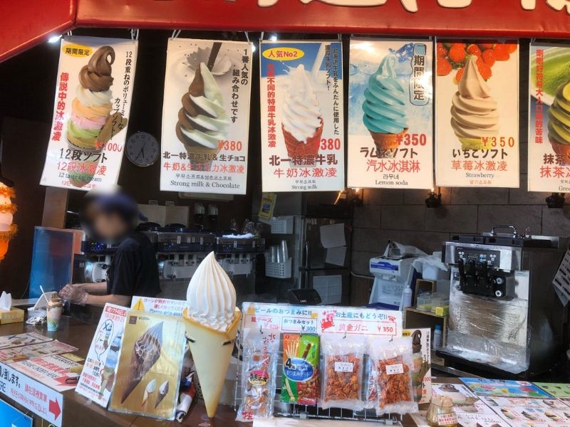 ソフトクリームメニューは豊富で、名物の8段ソフト以外に食べやすい普通サイズもあります。